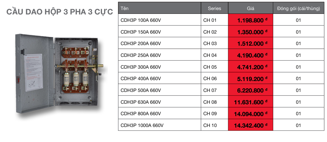 | CDH3P 630A 660V | CH 08 | Màu sơn ghi sáng | 630 | 01 SP/ hộp |
