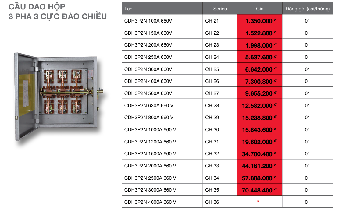 | CDH3P2N 2500A 660V | CH 34 | Màu sơn ghi sáng | 2500 | 01 SP/ hộp |